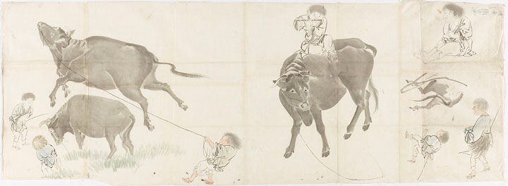 前 << >> 次 番号852 原作者(流派)不詳 (不詳) 表題牧童 材質技法紙本淡彩 形態まくり 員数1 法量 縦×横(cm)46.2×128.3 制作年– 写作者(所蔵者)岡田(広章) 写作年(所蔵年)文政11 (1828) 銘文(表)款記写・画賛写・写作者(所蔵者)の留書等– 銘文(裏)写作者(所蔵者)の留書等「文政戌子秋/牧童/岡田藏」 備考– 解説画の模写と考えられますが、原作者は不詳です。 前 << >> 次